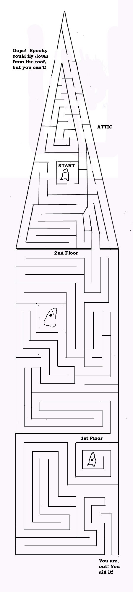 You were exploring the Haunted House where Spooky lives, and you made it to the attic. Then you realized that everything keeps moving around – furniture, walls, everything – and you don’t know the way out. Make your way out the maze with Spooky to find the way out! Use your cursor to help you keep your place in the maze. Don’t get lost!
